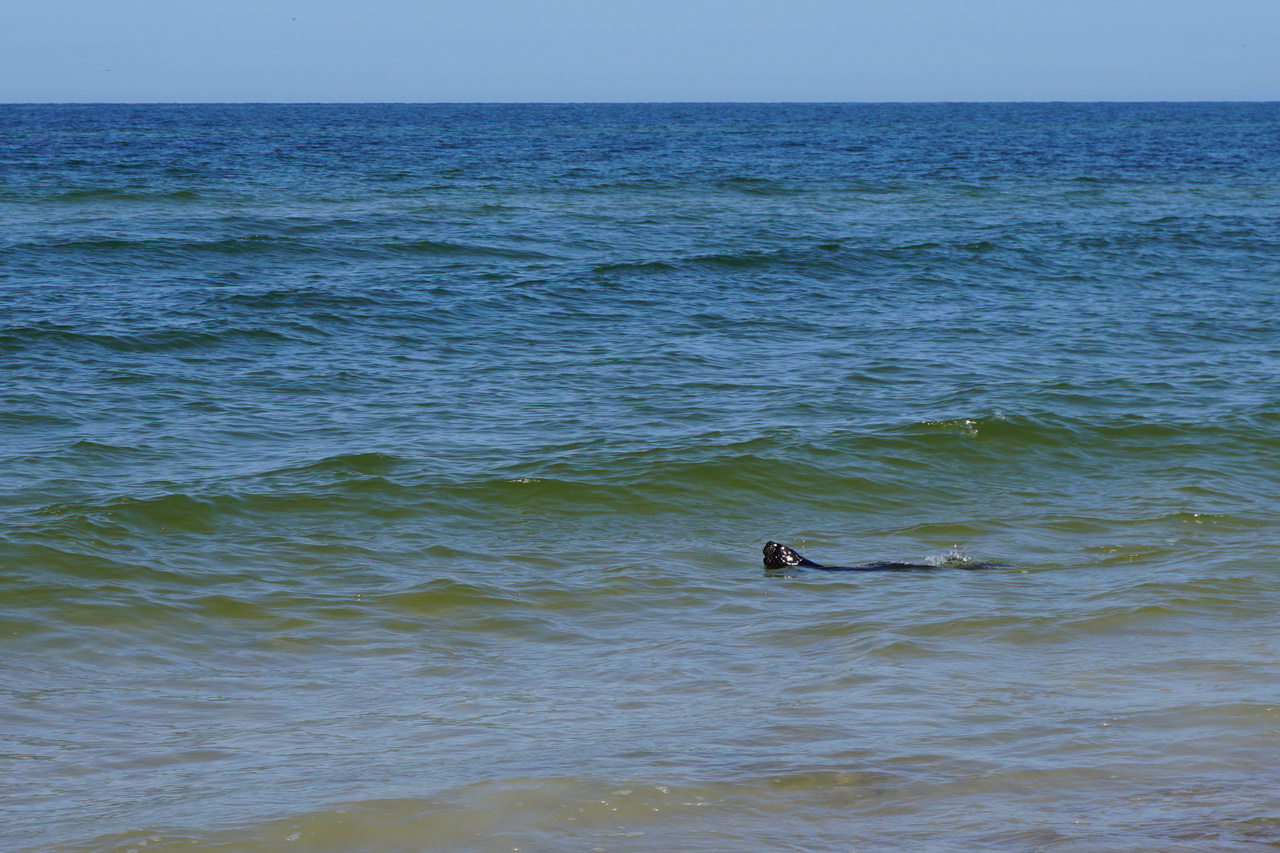 Co ciekawe, od jakichś pięciu lat w gazetach i na portalach internetowych co jakiś czas pojawiają się artykuły w stylu „Inwazja morskich bobrów!„, ale myślę, że w przypadku Bałtyku mówienie o „inwazji” jest grubą przesadą. Prawdą jest jednak, że coraz częściej również nad morzem, można na bobry natrafić. Dwa lata temu spędzaliśmy z Olą majówkę w Rowach i – spacerując wzdłuż plaży – mogliśmy naocznie się o tym przekonać. Spotkany przez nas zwierzak wyglądał na zmęczonego, jednak nie zważając na fale, uparcie płynął w stronę odległego o jakieś trzy kilometry ujścia Łupawy.