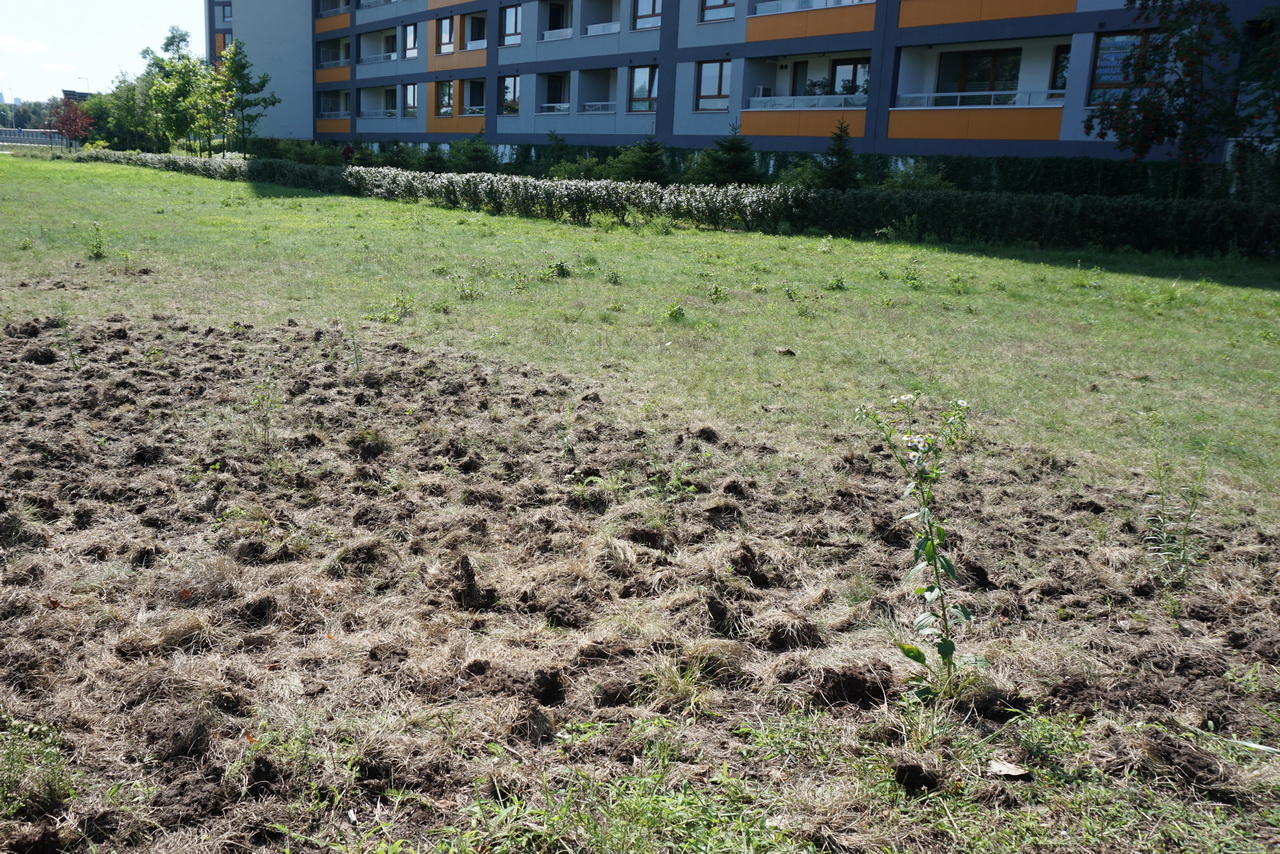 Prawda może zaskoczyć – w mieście sprawcami takich zniszczeń najczęściej bywają wrony. Pod koniec lata gustują w tłustych pędrakach, w poszukiwaniu których nie cofną się przed wyrywaniem trawy z korzeniami. Gdy winowajcy odlecą, na zrytą ziemię wkroczą gawrony i kawki. Po zmroku na wywróconym do góry nogami trawniku do stołu może zasiąść też wygłodniały jeż…