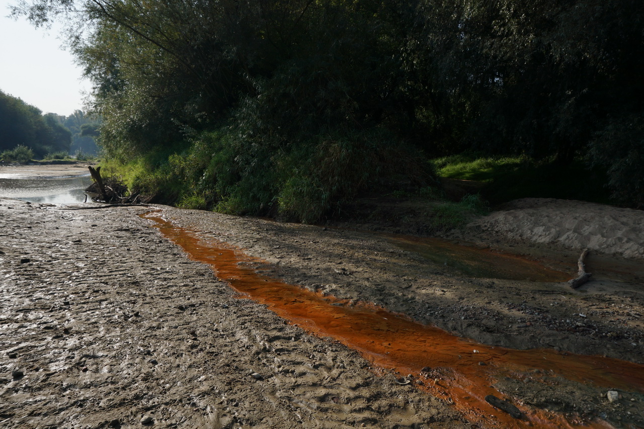 Nasza Wisła to rzeka, która charakteryzuje się dużą zmiennością poziomu wody. Wynika to oczywiście z deszczowo-śnieżnego typu jej zasilania. Późnym latem występują niżówki, które w przypadku braku opadów mogą przeciągać się nawet do zimy. Gdy wody ubywa, we wszelkich zagłębieniach terenu, które jeszcze do niedawna stanowiły fragment dna rzeki, zaczynają powstawać błotniste kałuże. Co ciekawe, tu i ówdzie takie niewielkie zbiorniki z upływem czasu potrafią ciekawie się zabarwić.