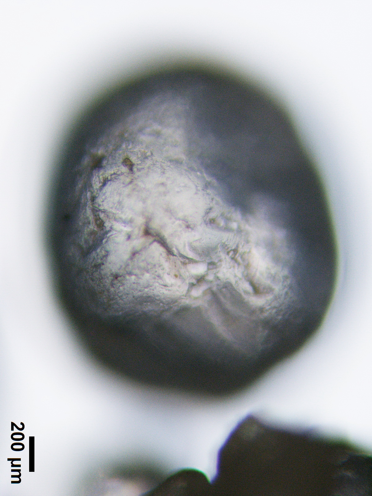 Jedno z wyselekcjonowanych przeze mnie ziarenek wiślanego piasku (widok spod mikroskopu).
