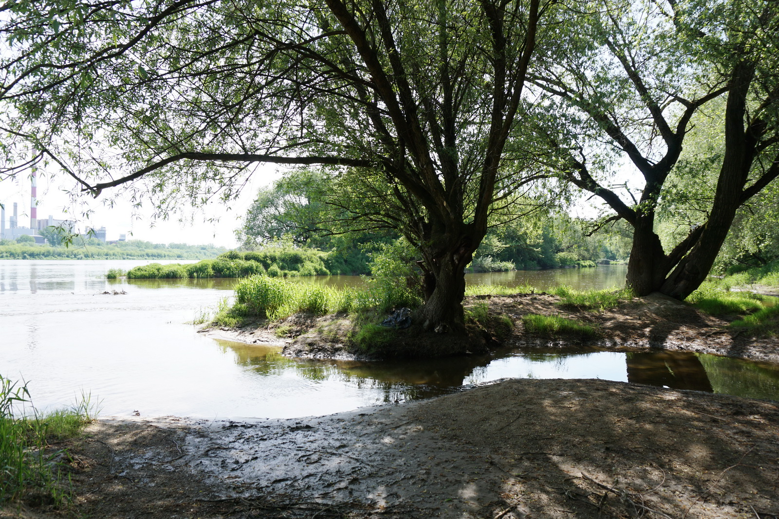 W ubiegły piątek spontanicznie wybraliśmy się z Olą nad rzekę. Poziom wody w Wiśle był dość wysoki, ale byliśmy w stanie – używając jako prowizorycznej kładki pnia powalonego drzewa – dostać się na odcięty od głównego nabrzeża niewielki fragment lądu nieopodal bielańskiej żwirowni.