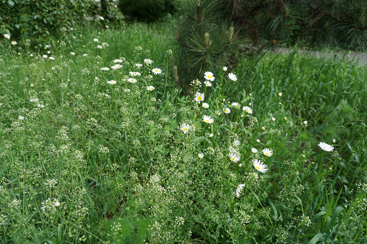 Jakiś tydzień temu w miejscu moich niejawnych działań zakwitły złocienie. Wśród trawy oraz kęp serdecznika tu i ówdzie dojrzałem też liście rumianu barwierskiego, cykorii podróżnik oraz dzikiej marchwi. Coś zatem przetrwało. Ucieszyłem się, ale nie mam złudzeń, że trawnik przed blokiem ma szansę przeobrazić się w coś przypominającego łąkę kwietną. Wszędzie wokół słychać już warkot kosiarek, a musicie wiedzieć, że goście, którzy zajmują się u nas „pielęgnacją” zieleni nie pieprzą się w tańcu. Skutki ich pracy nierzadko przypominają to, czego można by raczej spodziewać się po przejściu roju wygłodniałej szarańczy…
