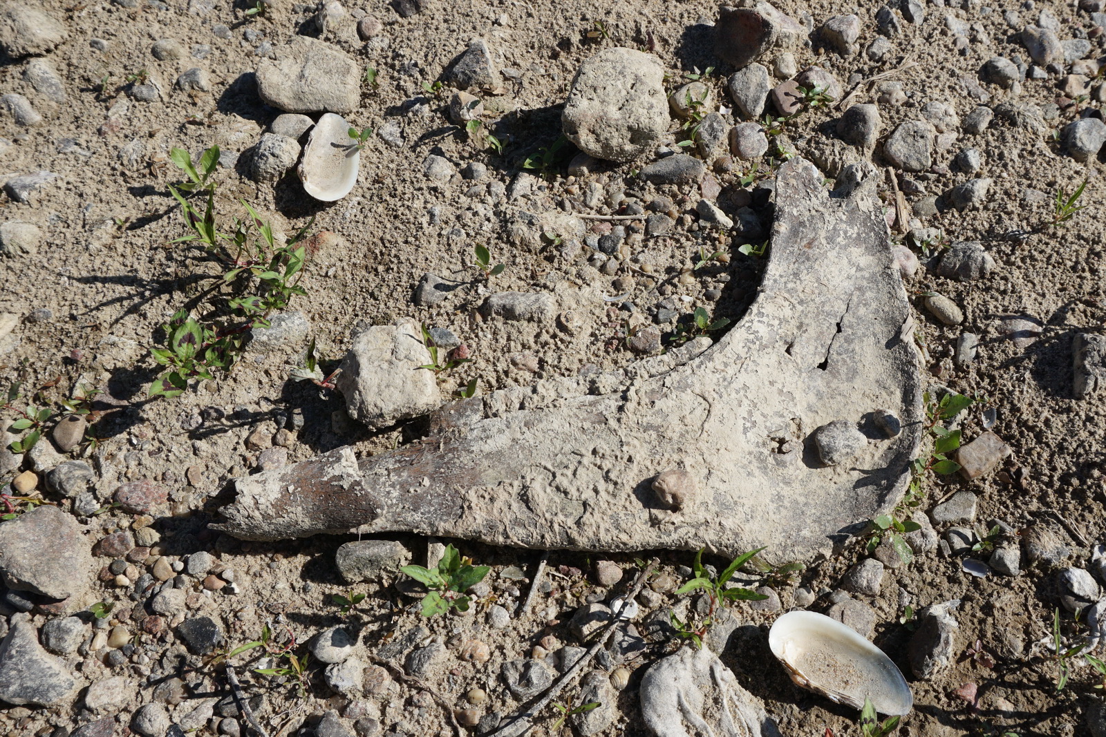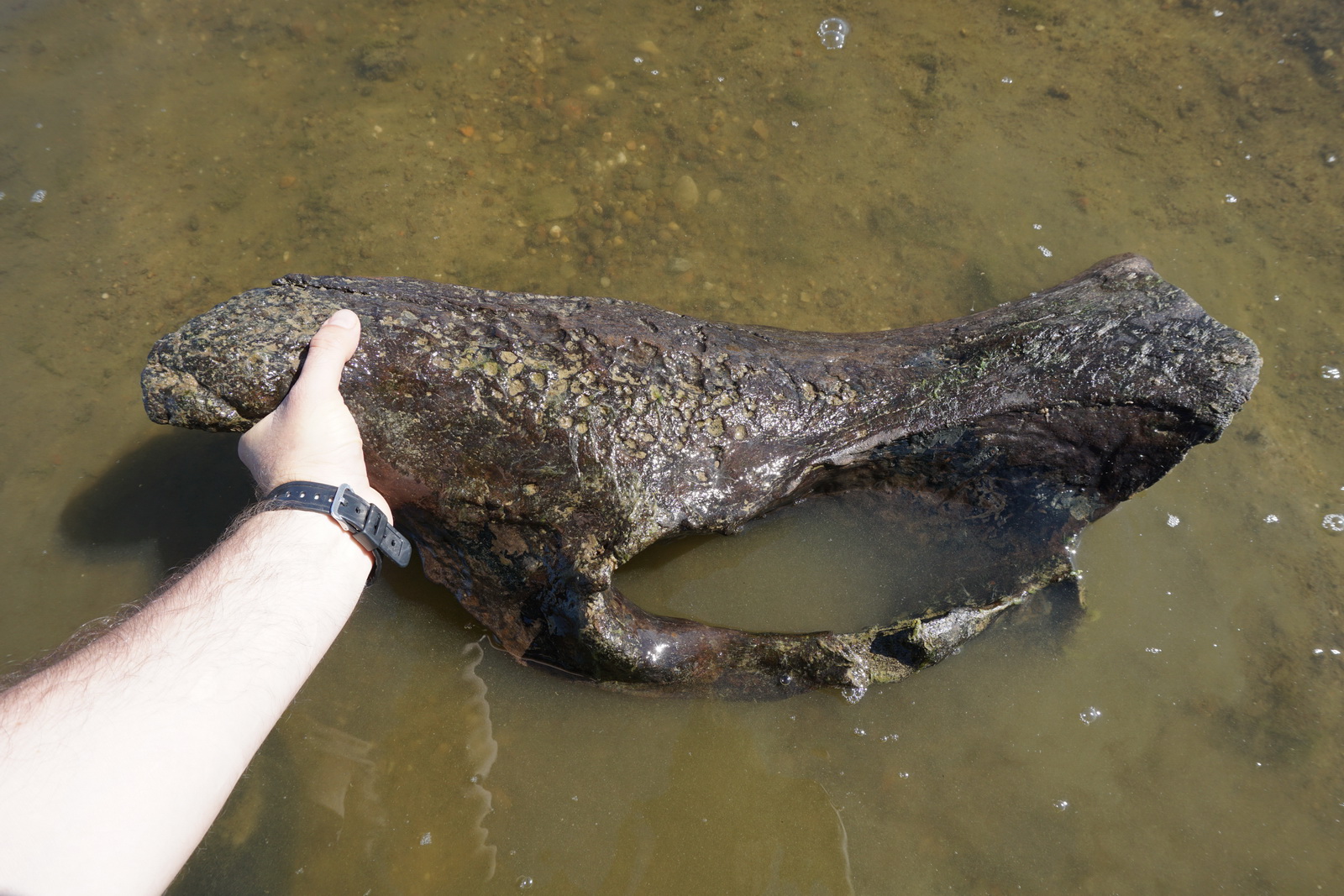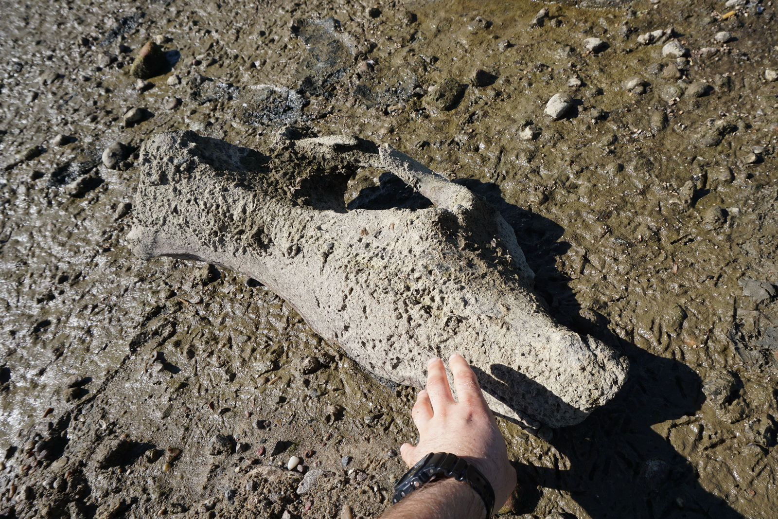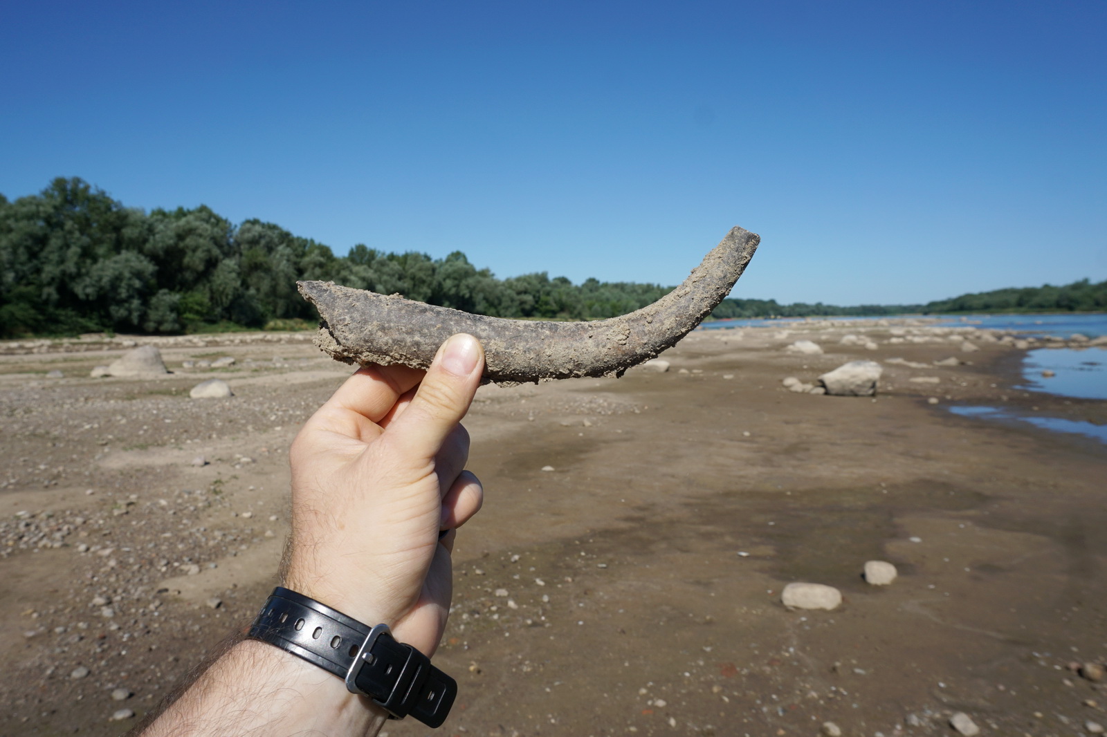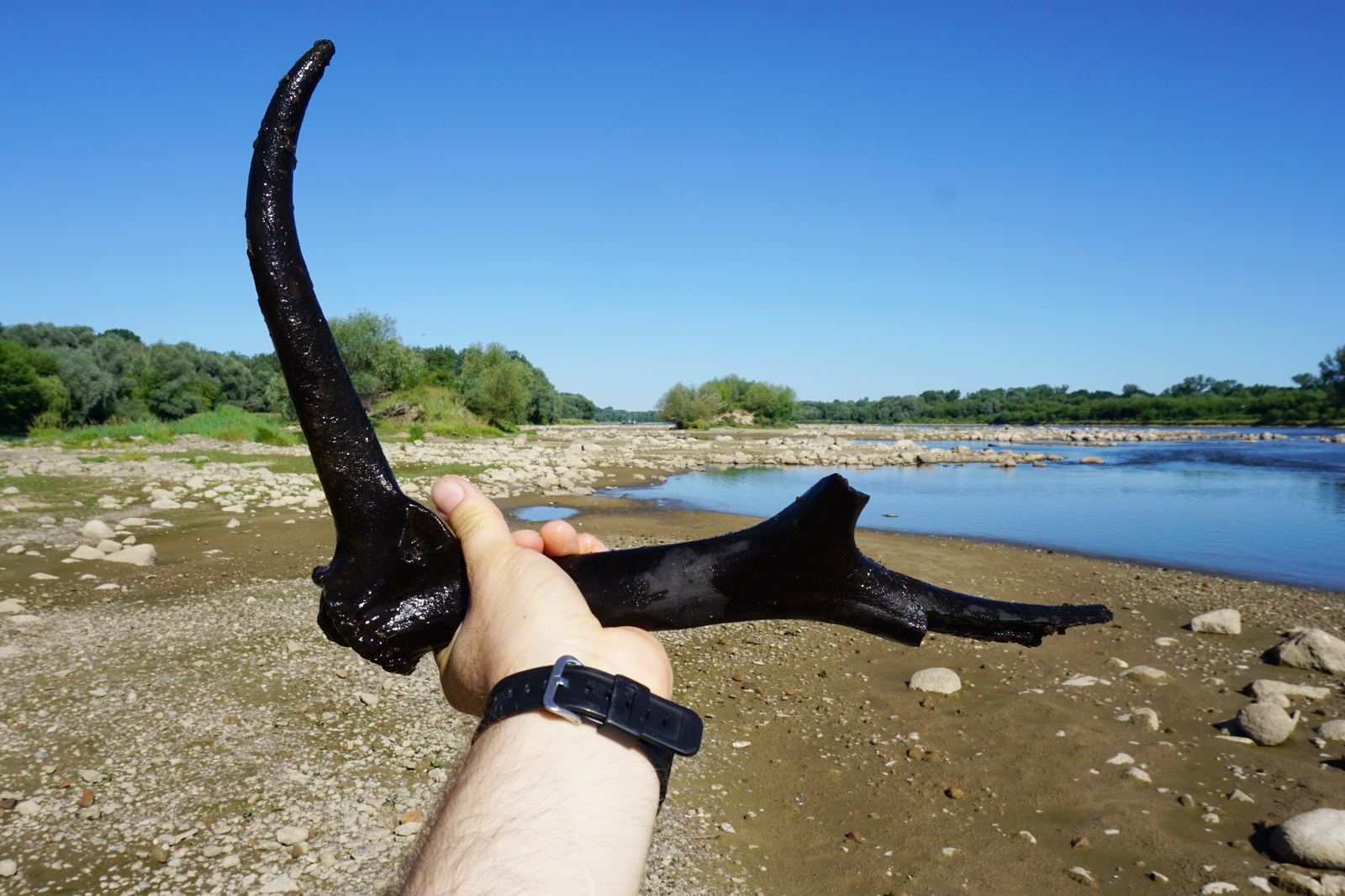 Wracając do tematu wiślanych znalezisk, w tym roku do mediów przebiły się doniesienia o odkryciu pozostałości mostu pontonowego z czasów, gdy w Stolicy trwała odbudowa przepraw przez Rzekę, zniszczonych w czasie II Wojny Światowej. Były też wieści o kilku wrakach łodzi, zbiorze starych butelek i świetnie zachowanym toporze z poroża jelenia, datowanym na epokę brązu (ktoś znalazł go na terenie gminy Stężyca). Jeżeli zaś chodzi o mnie, to podczas jednego z krótkich błotnych „safari” ( 😉 ) udało mi się upolować naprawdę grubego zwierza. Grasując wśród pokrytych warstewką iłu, polodowcowych kamulców, na jednej ze swoich miejscówek trafiłem na piękny fragment czaszki nosorożca włochatego. Tego dnia dopisało mi szczęście, ale – jakby dla równowagi – dostałem też lekkiego słonecznego udaru.