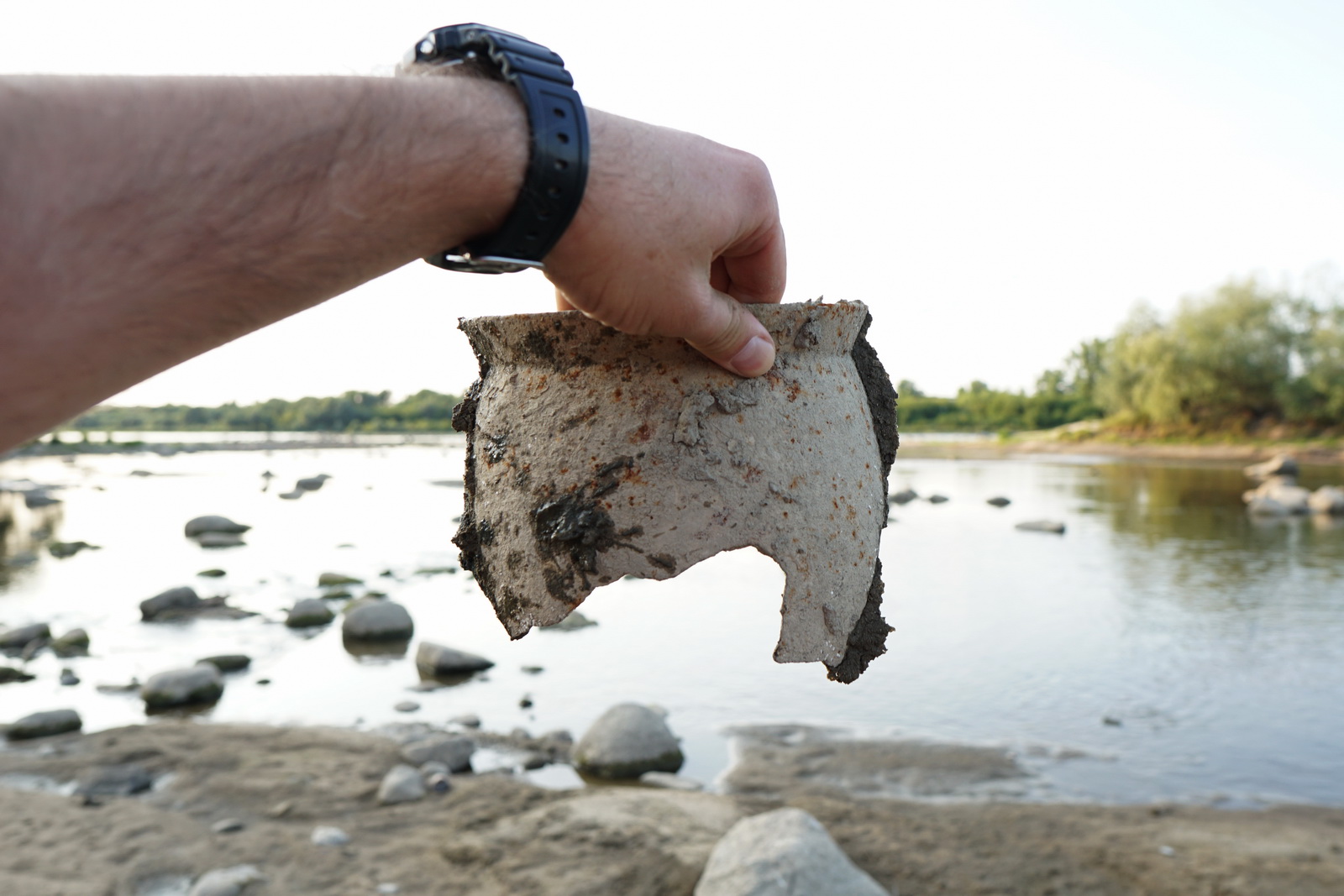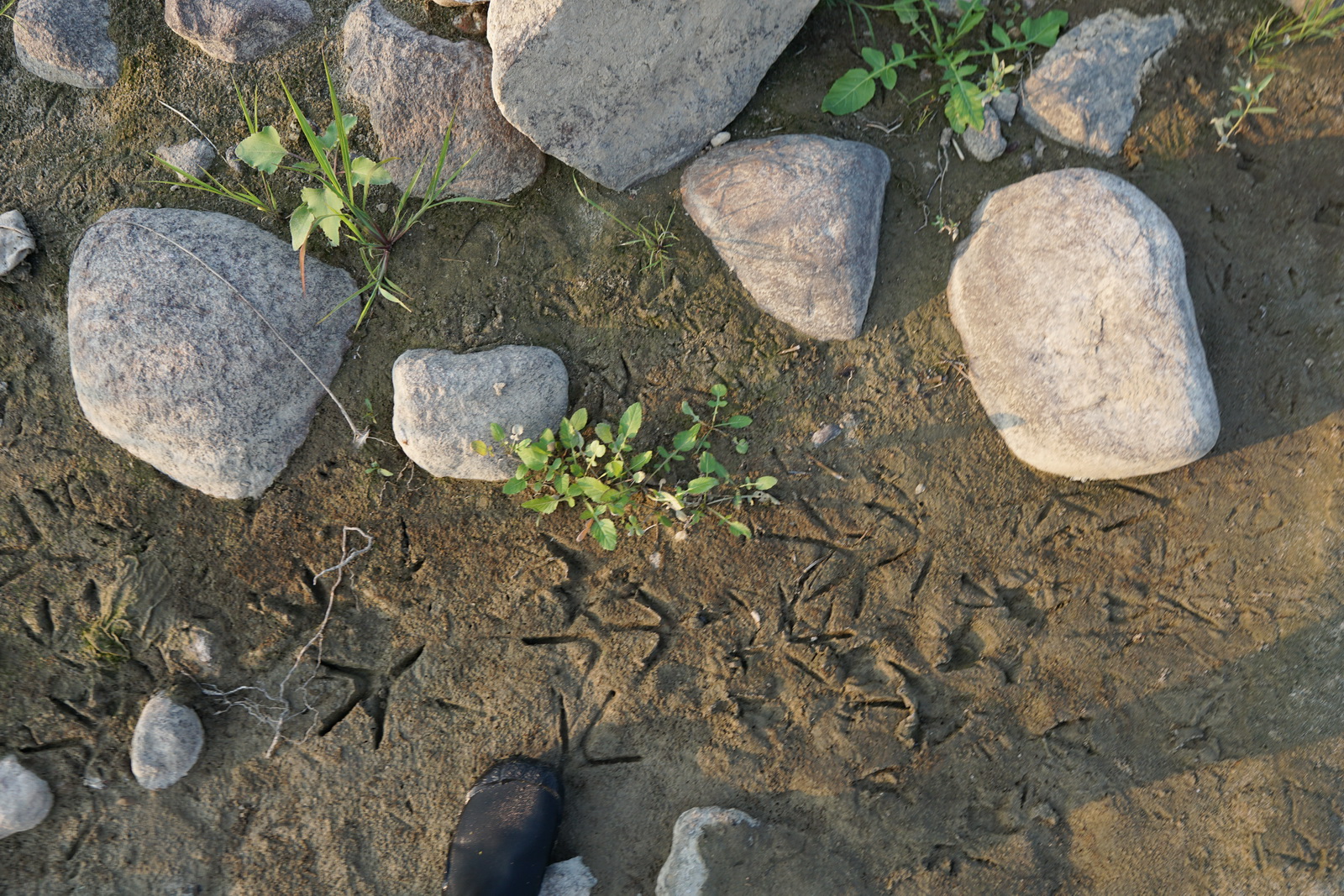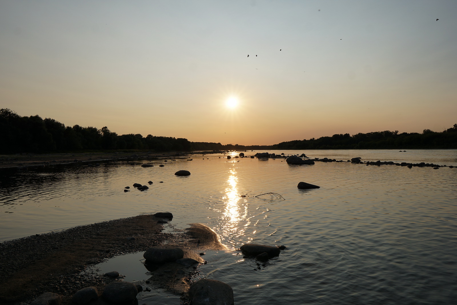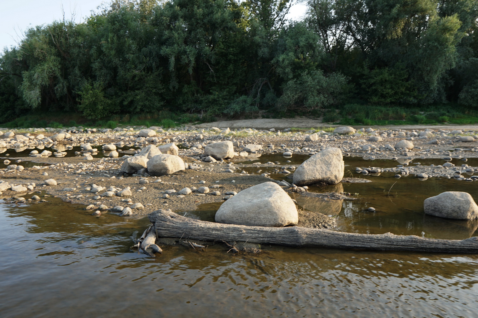Piątek po pracy. Artur zostaje z Olą, a ja zasuwam nad Wisłę. Brodząc w ciepłej wodzie, będę cieszył się chwilą. Marcin szuka drewna do swoich projektów (planuje robić rękojeści noży), natomiast ja – pętając się między polodowcowymi głazami – badam wzrokiem piktogramy odciśnięte w błocie przez ptasie stopy. Pobudzone wrony fruwają między wyspami. Nawołują się brodźce. Jest świetnie – w powietrzu unosi się zapach przygody. W odróżnieniu od zimorodka, który poleciał gdzieś z rybą, jakiś dziadek na łódce, nie może nic złowić…