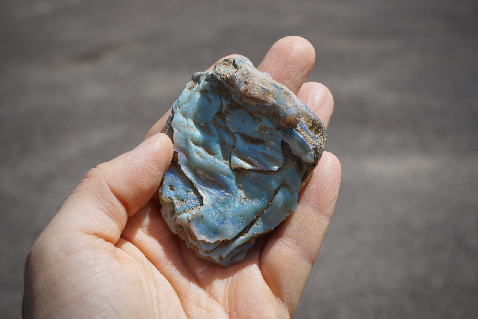 Latem ubiegłego roku, brodząc w Wiśle, na dnie wypatrzyłem coś niebieskawego. Intrygujący przedmiot – po obmyciu go z iłu – okazał się kawałkiem szkła. Nie było to jednak jakieś pospolite szkło w rodzaju denka butelki po piwie 🙂 Mleczno-niebieska znajda z jednej strony miała formę osobliwie zagniecionej, warstwowej masy. Na rewersie nie było warstw, ale na lekko wklęsłej powierzchni również działo się coś ciekawego. Zdobił ją swoisty pejzaż nierówności, zagłębień i wżerów. Całość była obtłuczona na brzegach. Nie będę spekulować, jak powstało to cudo, ani dlaczego znalazło się w Rzece, ale można domniemać, iż spędziło w niej dłuższy czas. Skąd taki wniosek? Powierzchnia obiektu – oglądana pod różnymi kątami – mieniła się kolorami tęczy. Zjawisko optyczne tego rodzaju jest zwane iryzacją (od greckiej bogini Iris) i w przypadku szkła może być skutkiem naturalnie zachodzących procesów. Szklane przedmioty, które długo leżą w wilgotnej glebie – w sprzyjających warunkach – mogą ulegać specyficznemu procesowi starzenia. Woda (o określonym odczynie) wypłukuje ze szkła niektóre z jego składników, czego efektem jest pojawianie się na jego powierzchni wielu super-cienkich warstewek. To właśnie one rozpraszają światło na podobieństwo pryzmatu, dzięki czemu możemy podziwiać swoisty taniec kolorów.