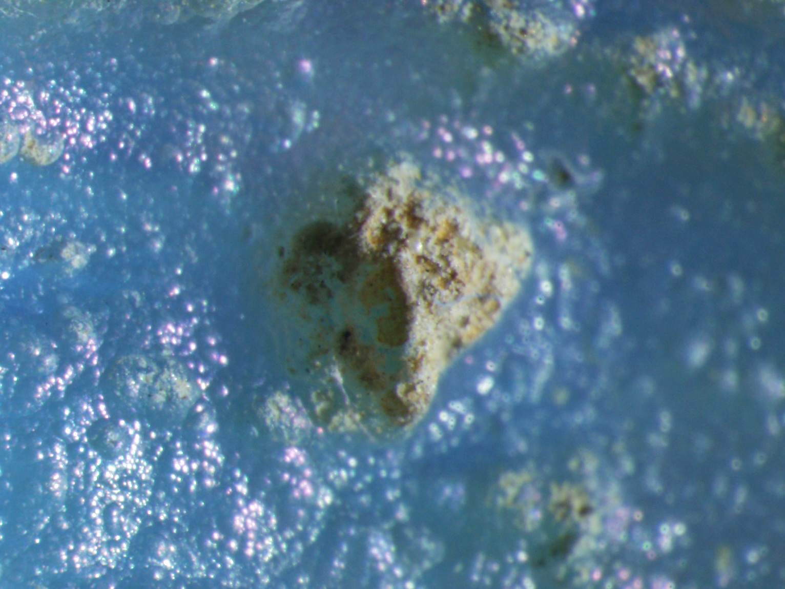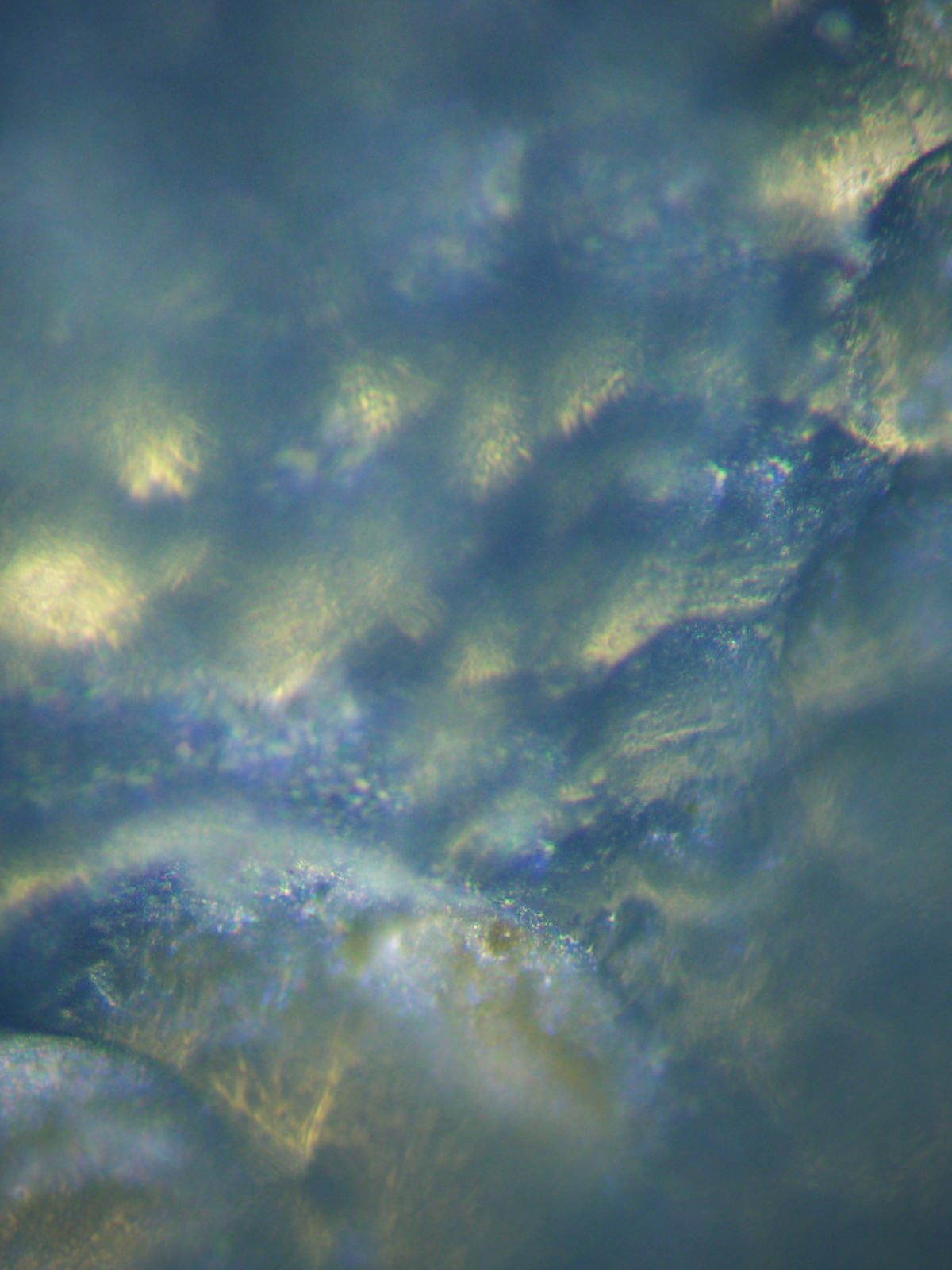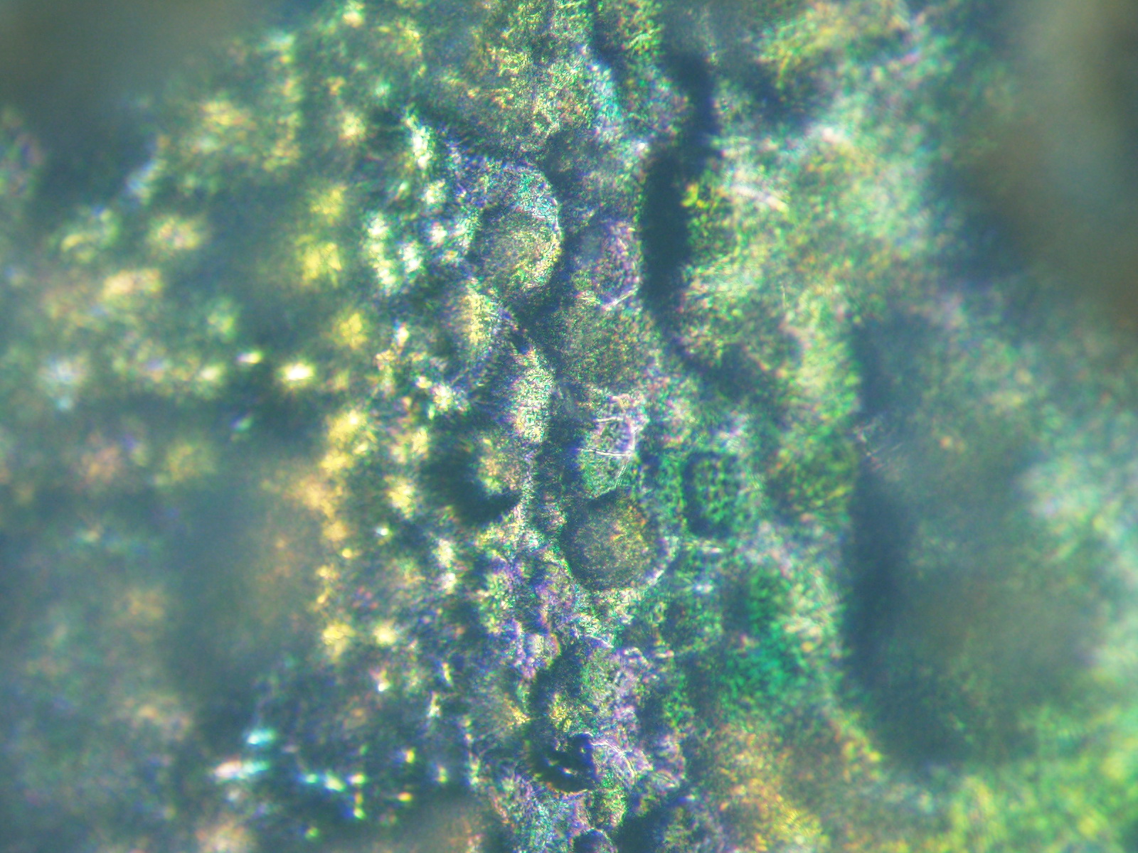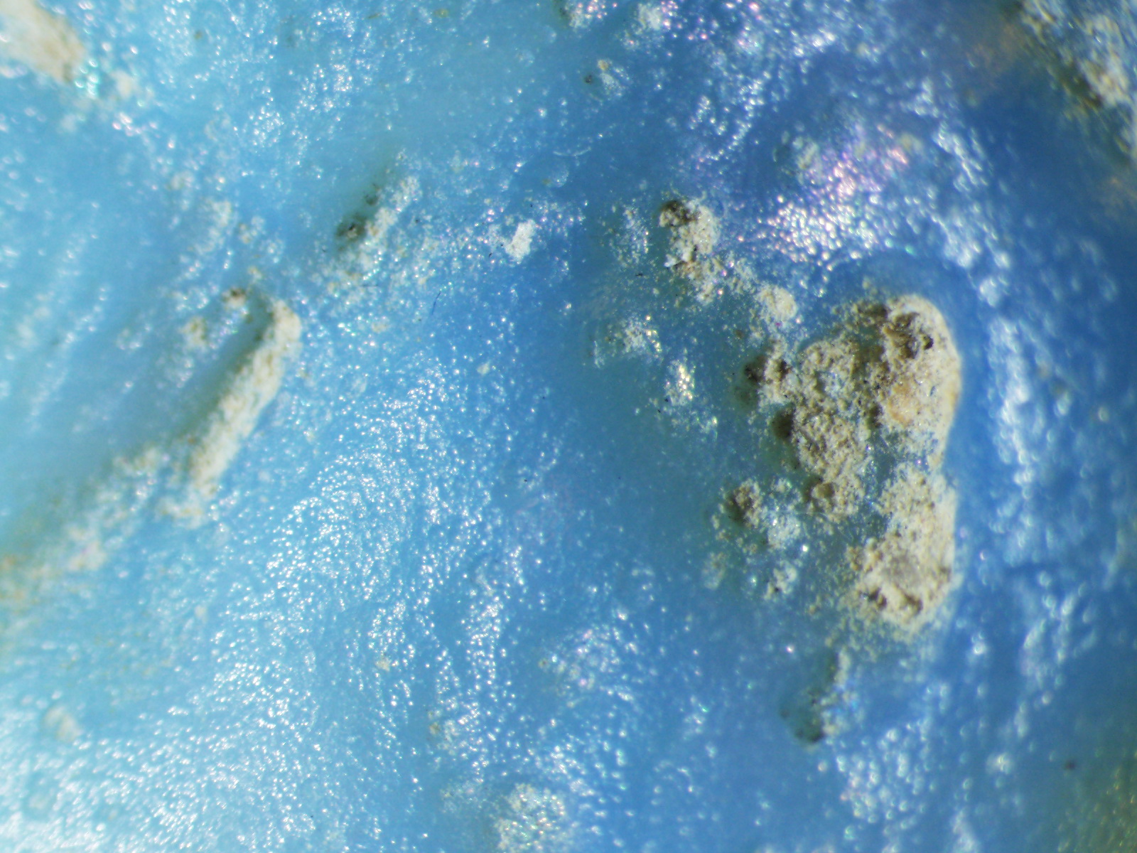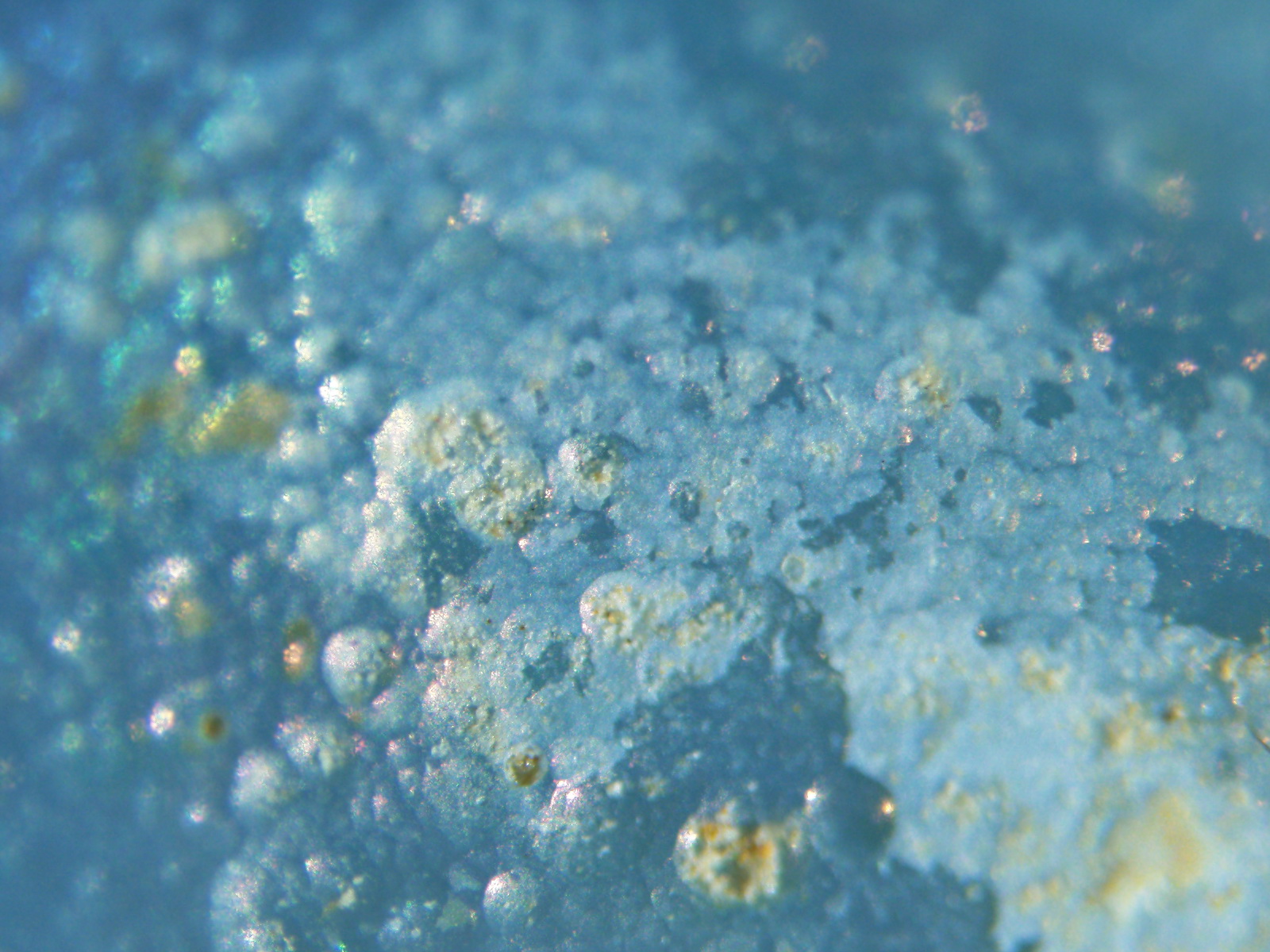 Co ciekawe, znaleziona przeze mnie szklana osobliwość może stać się jeszcze bardziej interesująca. Wystarczy obejrzeć ją w skali „mikro”, wzlatując na skrzydłach wyobraźni. W zbliżeniach jej powierzchni można doszukać się różnych ciekawych rzeczy. Szafirowe góry? Atole wysp na lazurowym morzu? Rozsypane klejnoty? Wielobarwna zorza? Kosmiczne skały? Proszę bardzo! Przeglądając poniższą galerię, możecie sprawdzić to sami…