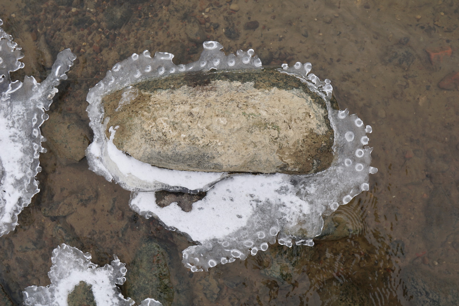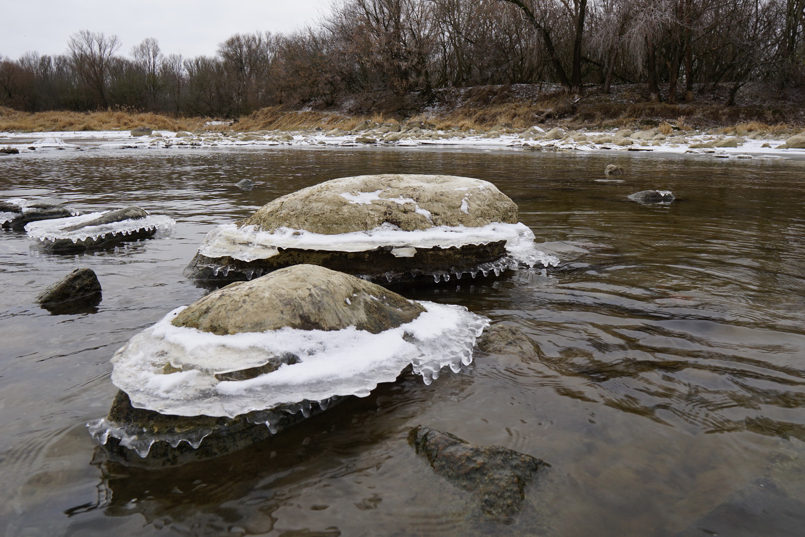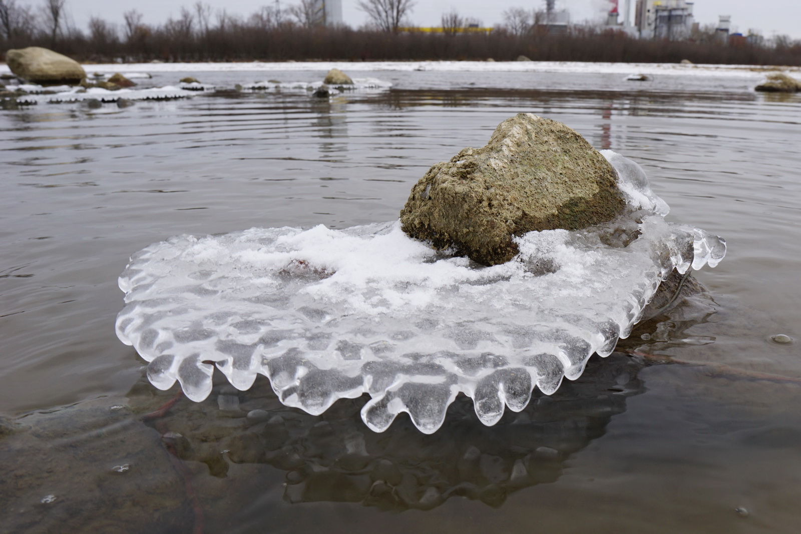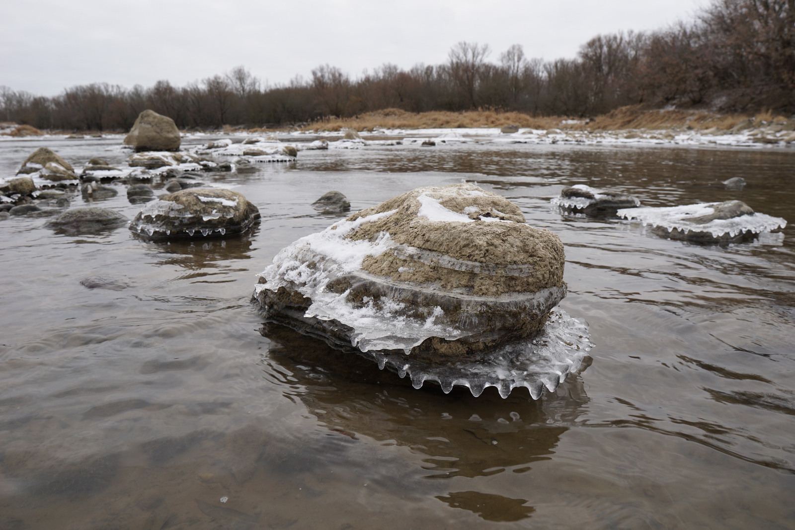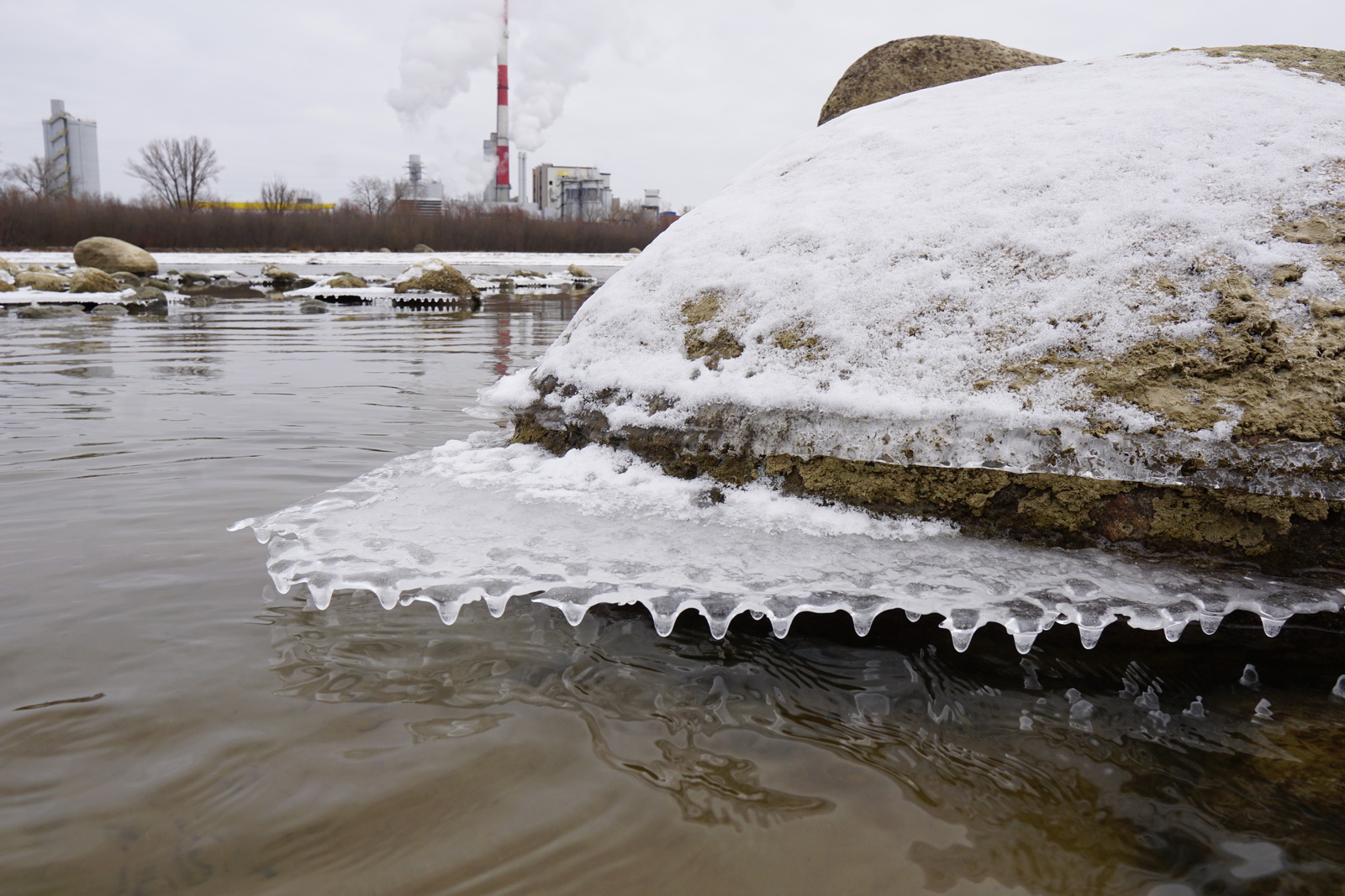 Wczoraj brodziłem trochę w Rzece, żeby przetestować nowe wodery. Warunki nie zachęcały do wchodzenia do wody (nagły atak zimy), lecz brak komfortu z naddatkiem rekompensowały niezwykłe widoki. Okazało się bowiem, że tu i ówdzie pojawiły się interesujące formy lodu brzegowego. Polodowcowe głazy, zalegające w nurcie przy wyspach naprzeciw żerańskiej elektrociepłowni były przyozdobione osobliwie wyglądającymi lodowymi taflami. Owe zawieszone ponad lustrem wody formacje były malowniczo pofałdowane, o krawędziach pełnych zamrożonych zacieków. W rezultacie, wiele kamulców przypominało ogromne małże albo morskie ślimaki. Niektóre zlodzenia kojarzyły mi się też z postrzępionymi płetwami ryb lub mackami ośmiornic. Nie wiem, czy macie podobnie, ale ja uwielbiam zjawiska lodowe. Niestety, z powodu pogłębiającego się ocieplenia klimatu, na Wiśle coraz rzadziej i krócej można je obserwować…
