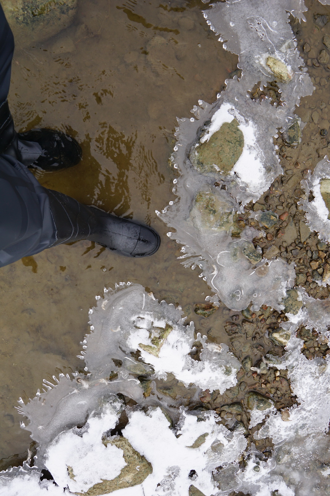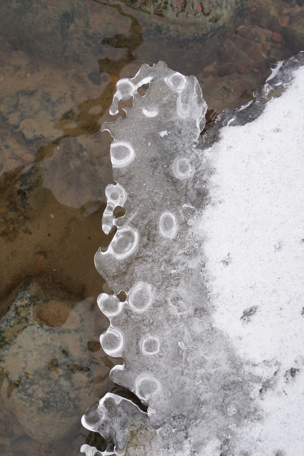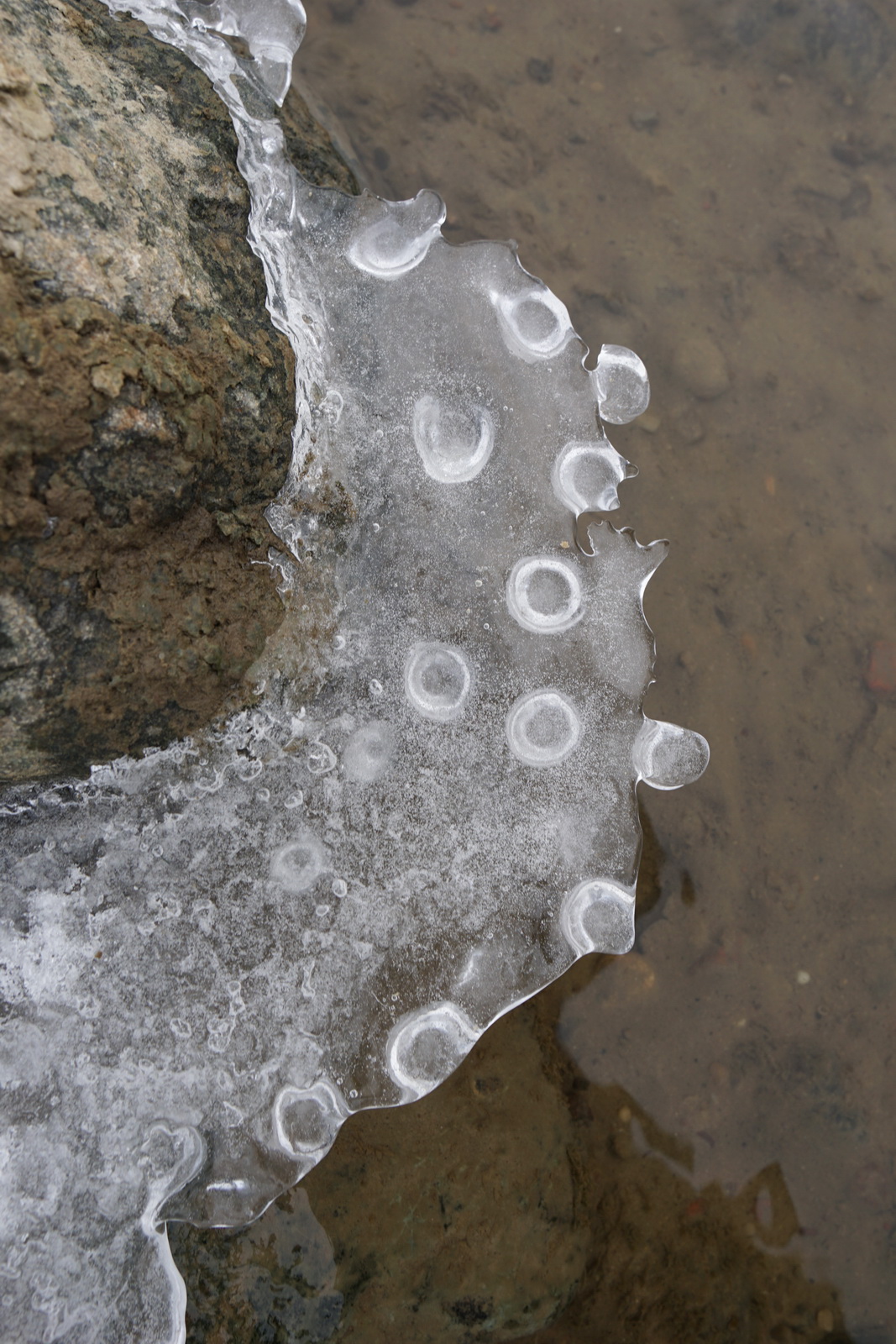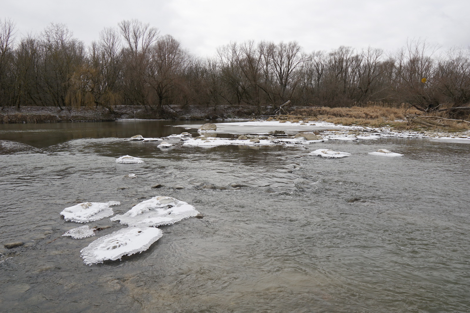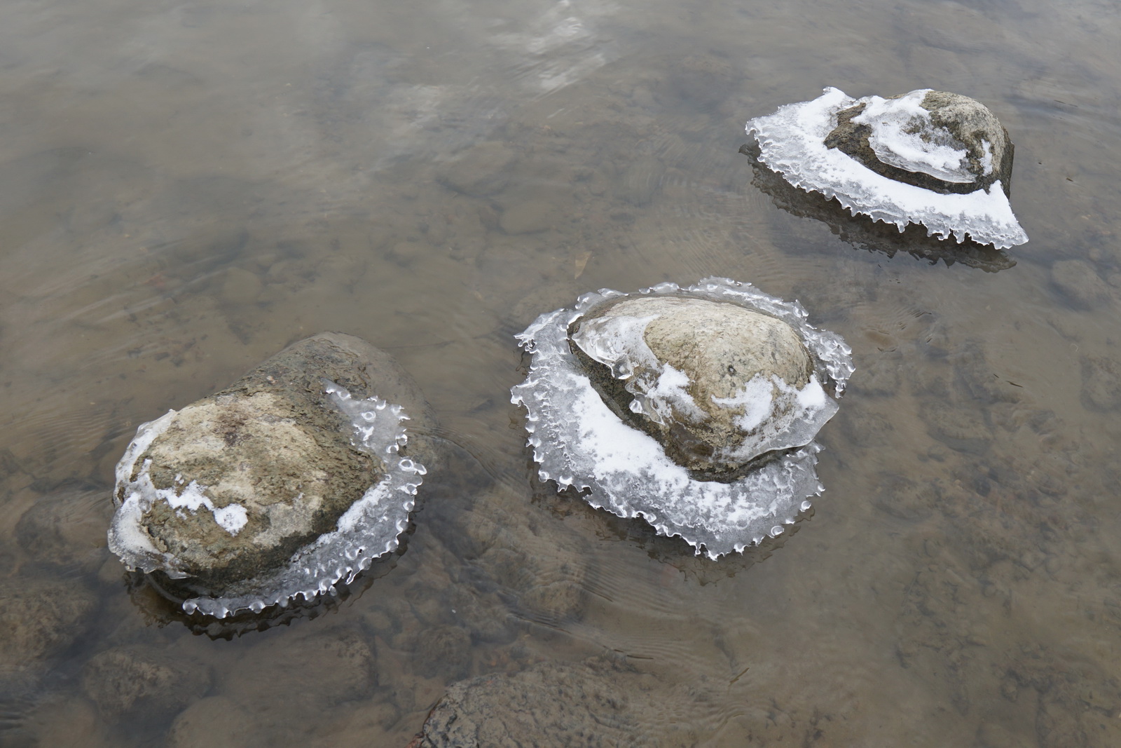 Wczoraj brodziłem trochę w Rzece, żeby przetestować nowe wodery. Warunki nie zachęcały do wchodzenia do wody (nagły atak zimy), lecz brak komfortu z naddatkiem rekompensowały niezwykłe widoki. Okazało się bowiem, że tu i ówdzie pojawiły się interesujące formy lodu brzegowego. Polodowcowe głazy, zalegające w nurcie przy wyspach naprzeciw żerańskiej elektrociepłowni były przyozdobione osobliwie wyglądającymi lodowymi taflami. Owe zawieszone ponad lustrem wody formacje były malowniczo pofałdowane, o krawędziach pełnych zamrożonych zacieków. W rezultacie, wiele kamulców przypominało ogromne małże albo morskie ślimaki. Niektóre zlodzenia kojarzyły mi się też z postrzępionymi płetwami ryb lub mackami ośmiornic. Nie wiem, czy macie podobnie, ale ja uwielbiam zjawiska lodowe. Niestety, z powodu pogłębiającego się ocieplenia klimatu, na Wiśle coraz rzadziej i krócej można je obserwować…