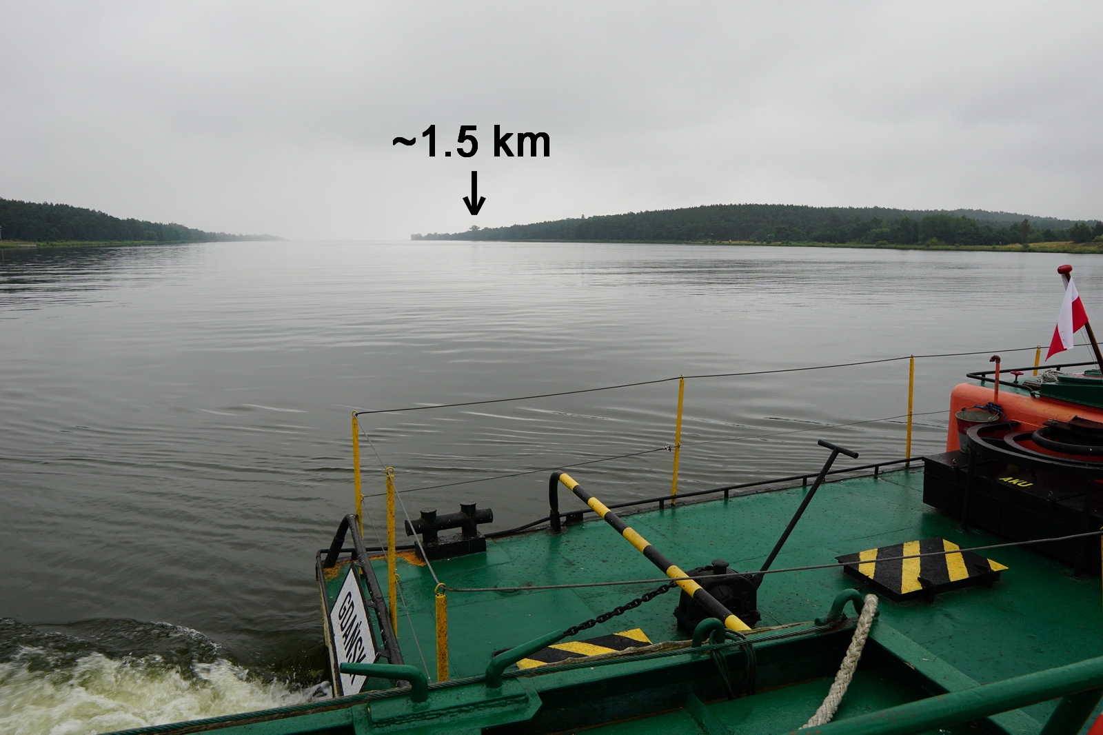 Sylwetka bohaterki niniejszego wpisu, widoczna z pokładu promu dolnolinowego, kutra rybackiego oraz packrafta.