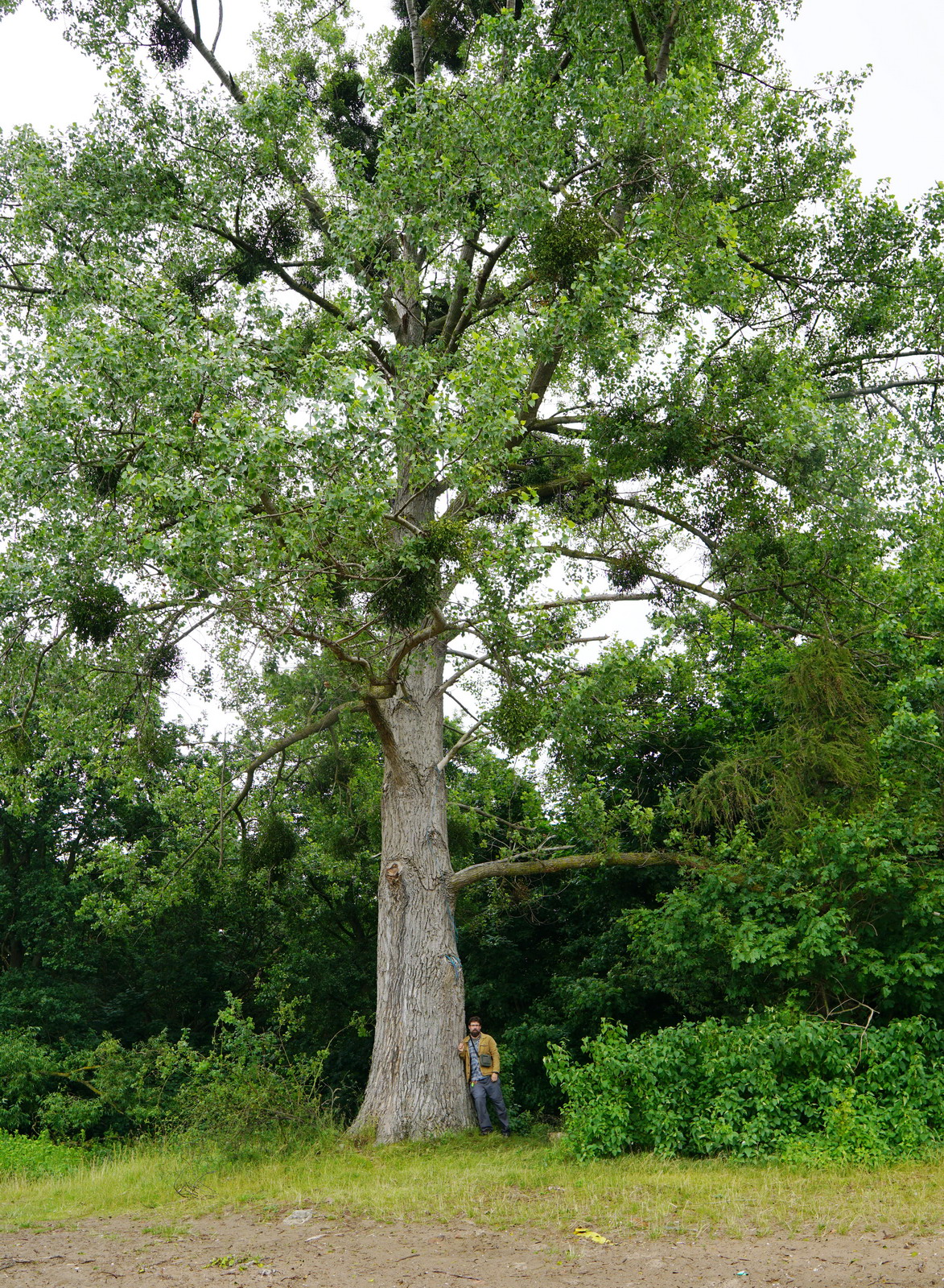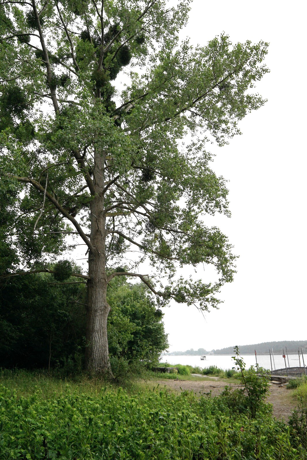 Wysoko osadzona, zbudowana z ukośnie wzniesionych konarów korona mikoszewskiego drzewa jest obwieszona jemiołą, która zaczyna je osłabiać. Niestety, to typowa przypadłość sędziwych „kanadyjek”. Nie zmienia to jednak tego, że jest ona jednym z głównych bohaterów zielonej scenerii końcowego odcinka Wisły. Moim zdaniem jest to wystarczający powód, by rozważyć złożenie wniosku o objęcie jej pomnikową ochroną. Przy tej okazji dobrze byłoby nadać topoli imię – może odwołujące się do jakiejś kobiecej postaci sprzyjającej rybakom, żeglarzom lub czuwającej na straży? Jestem ciekawy, czy macie jakieś pomysły. Jeśli tak, wpisujcie je śmiało w komentarzach…