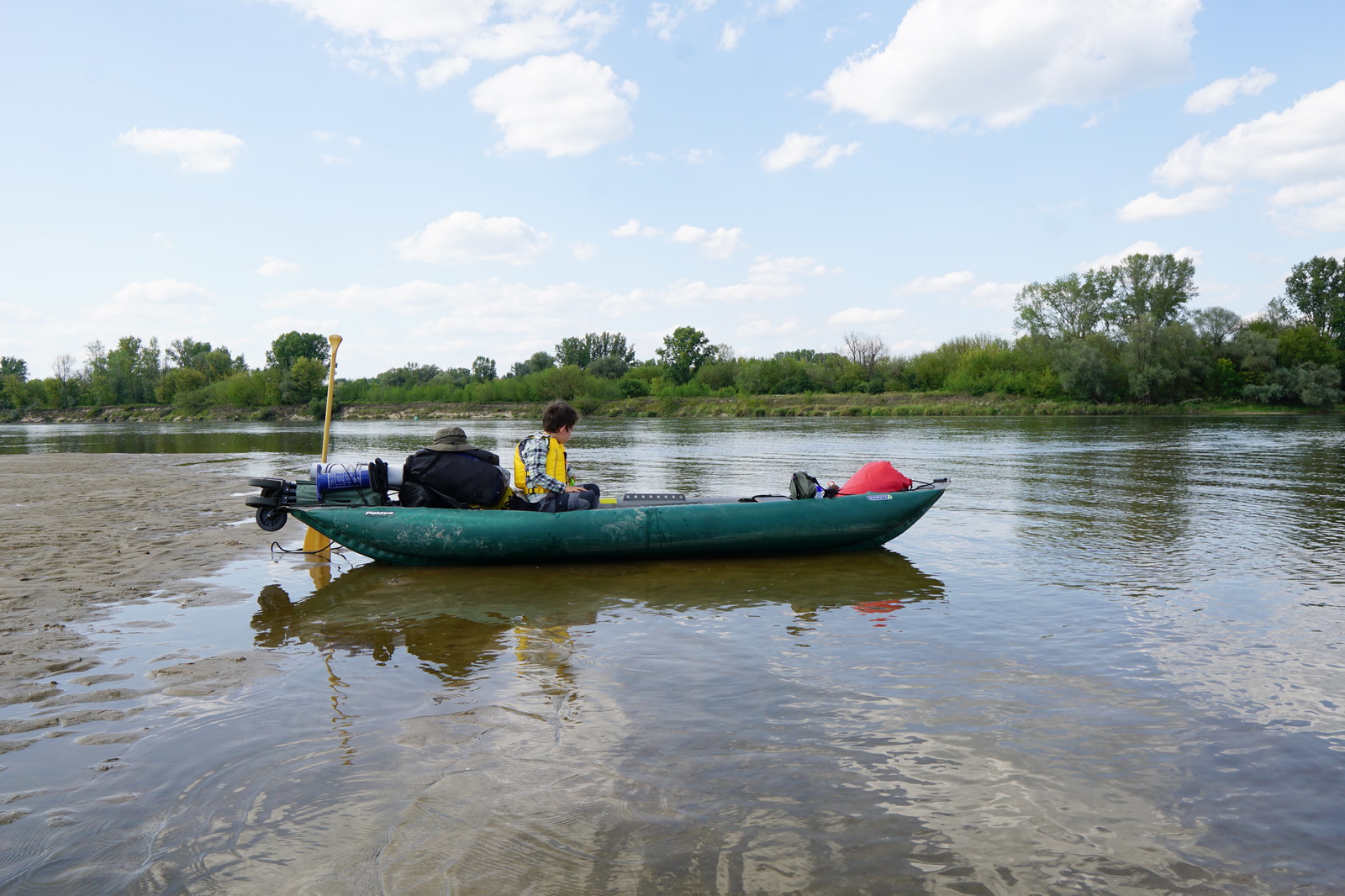 Tym razem na Wiśle byliśmy we trzech – ja, Sławek i mój sześcioletni Artur. Tego dnia niespiesznie przewiosłowaliśmy około dwadzieścia kilometrów. Jeden z „dmuchańców” miał nieszczelny zawór i w międzyczasie trzeba go było dwa razy dopompowywać. Utopiłem ponadto ulubiony kapelusz, a młody – przez nieuwagę – puścił z nurtem swoją plastikową łopatę (popłynęła w dal niczym okręt zwiadowczy). Mieliśmy też niespodziewaną atrakcję: przelot samolotów wojskowych, biorących udział w generalnej próbie Parady Lotniczej, zaplanowanej na 15 sierpnia.