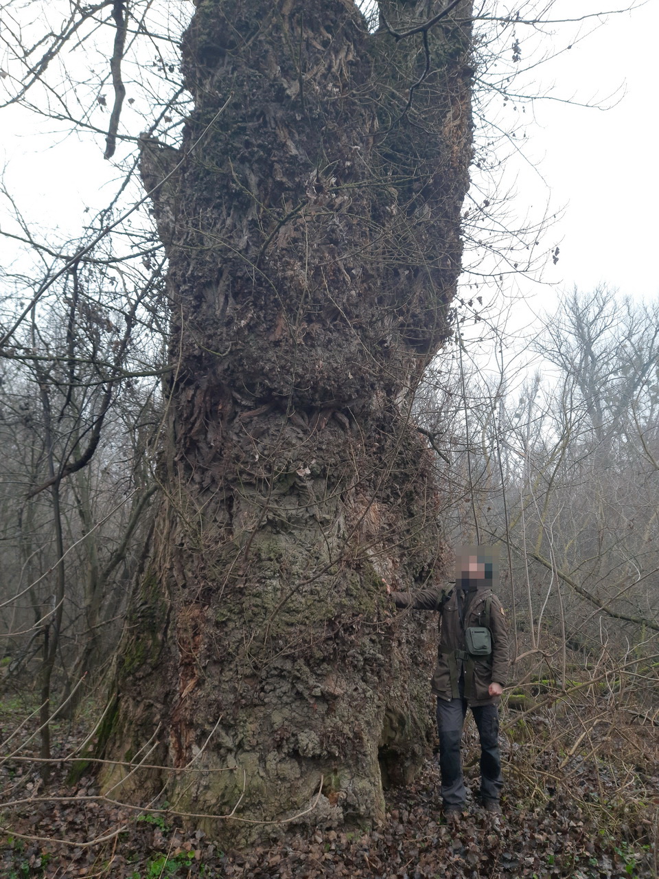 Spotkanie z olbrzymem. Autor przy monumentalnej, jednopniowej sokorze (obwód na wysokości pierśnicy – 807 cm).