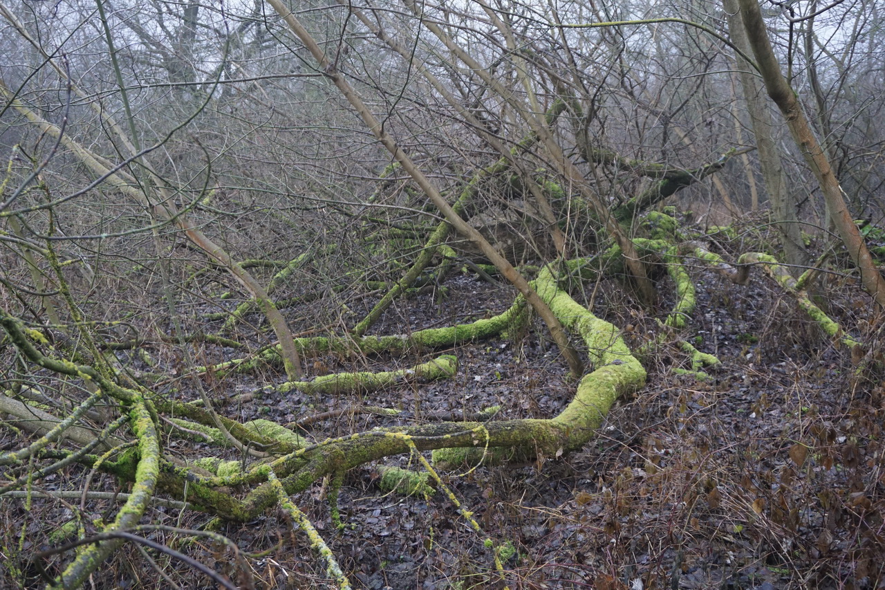 Mniej więcej w połowie grudnia ubiegłego roku natknąłem się na niewielką enklawę dzikości. Zespół Przyrodniczo-Krajobrazowy Olszyna, bo o nim mowa, usytuowany jest na obrzeżach warszawskiego osiedla Słodowiec. Ten mały zakątek to jedna z nielicznych pamiątek, które pozostały po dolinie rzeki Rudawki. Ta żoliborska rzeka pierwotnie płynęła z Powązek przez Marymont, by ostatecznie złączyć się z Wisłą. Niestety, z upływem lat została najpierw zmelioryzowana, a później prawie w całości osuszona. W Parku Olszyna ciek wodny, który po niej pozostał przybrał formę wąskiego kanałku.