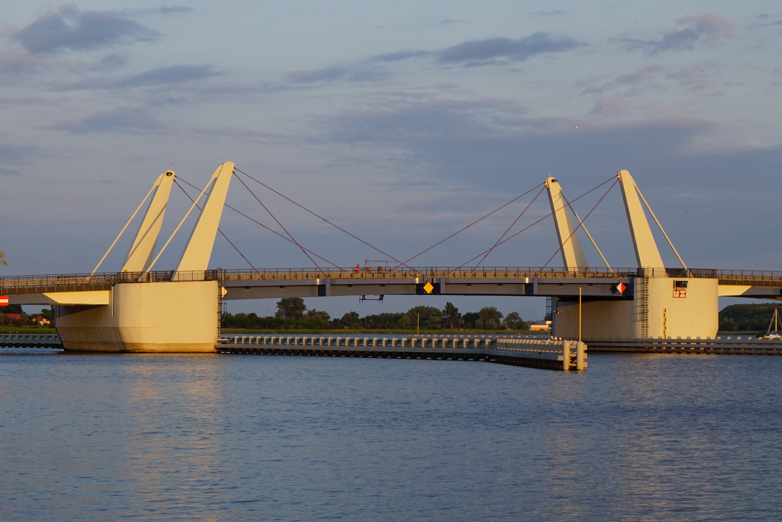 Most zwodzony, oddany do użytku w 2019 roku. Główna droga lądowa na Wyspę Sobieszewską.
