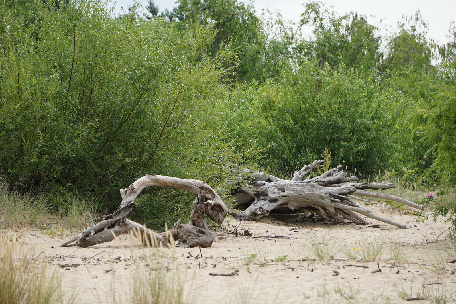 W przerwach między opadami dwukrotnie odwiedziłem ujście Wisły. W okolice Świbna i Mikoszewa ciągnie mnie nie tylko z powodu Rzeki, ptaków i fok. Nieco ponad półtora kilometra na północ od przeprawy promowej – na prawym brzegu, znaleźć można też coś innego, ale również wartego uwagi. Maszerując ścieżką biegnącą równolegle do nabrzeża, w ciągu około trzydziestu minut można dotrzeć do pozostałości pomostu cumowniczego. Tuż obok stoją klockowaty bunkier oraz górująca nad otoczeniem stara topola kanadyjska (Populus × canadensis ‘Robusta’).