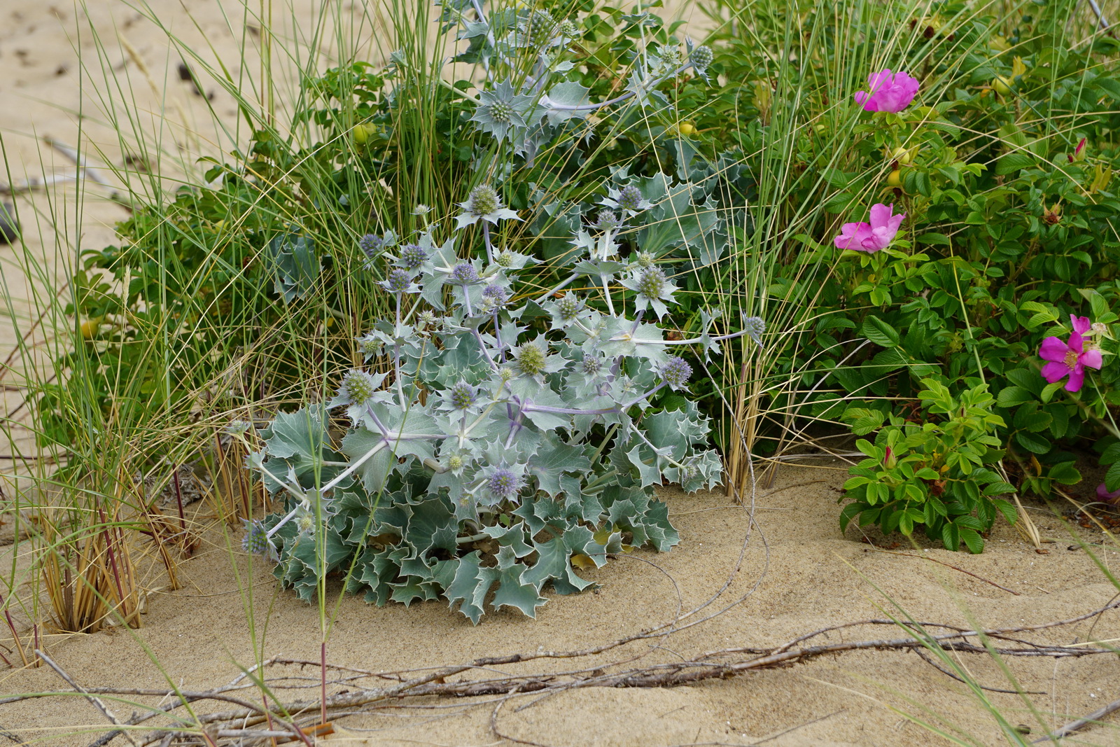 Jeżeli chodzi o cześć lądową, to rezerwat składa się z dwóch części. Po gdańskiej stronie zlokalizowana jest mniejsza z nich (obejmuje 18,91 ha). Poza obniżeniem terenu w jej części centralnej, gdzie występują szuwary i zarośla wierzbowe, znajdziemy na niej zespoły młodych wydm, będących stanowiskami rzadkich roślin (np. mikołajek nadmorski, lnica wonna, czy kruszczyk rdzawoczerwony). Spore połacie jałowej ziemi porastają też łany inwazyjnej róży pomarszczonej. Odnośnie flory tutejszych terenów podmokłych, to oprócz roślinności typowej dla trzcinowisk rosną tu także rośliny słonolubne, takie jak solanka kolczysta, czy arcydzięgiel nadbrzeżny.
