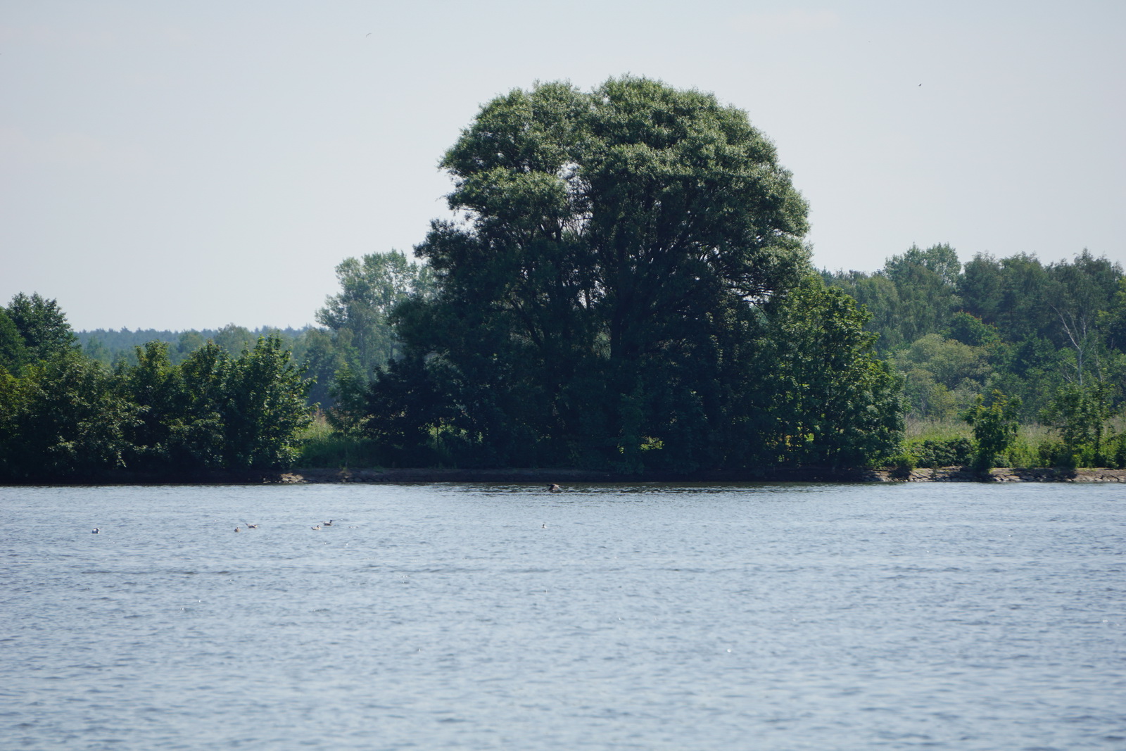 Dzisiaj mamy ten komfort, że można wypływać Wisłą na morze bez formalności. Wojskowa infrastruktura powoli popada w zapomnienie, ale towarzysząca jej topola – niczym wysoka, zielona wieża niezłomnie stoi na straży Ujścia. Topole mieszańcowe mają opinię problematycznych, ale ta konkretna „kanadyjka” wydaje się być wyjątkowo na miejscu. Po pierwsze – to ostatnia wielka topola, jaką zobaczycie spływając Rzeką (rośnie zaledwie dwa kilometry od ujścia i dla mnie osobiście stanowi swoistą formę kilometrażu). Po drugie, gdy patrzy się na jej koronę, wyraźnie wystającą ponad linię okolicznych drzew, trudno oprzeć się wrażeniu, że posadzono ją po to, by z wyprzedzeniem wskazywała lokalizację ówczesnej Strażnicy.